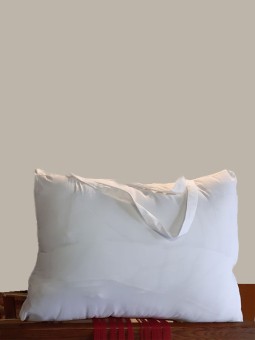 Chaleur et bien-être. Couette en laine naturelle de nos brebis lourdaise enveloppée de tissu 100% coton et vendue avec son sac de transport zippé en coton.